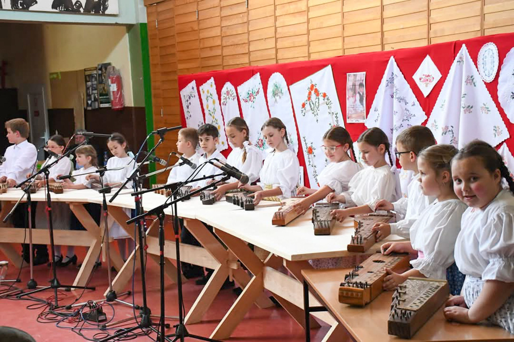 A 2024-25-ös évadban a gyermekciterások 3 csoportban tanultak, gyakoroltak Zelenka Anna vezetése alatt. Részt vettek 2025 tavaszán a Szólj síp szólj! és Aranycitera népzenei vetélkedőkön, ahol ezüst és bronz minősítésben részesültek. A felnőtt citerazenekar az asszonykórussal felléptek a muzslyai Szilasi napokon és a magyarittabéi Durindón. A Berbence vonós zenekarunk a gyermektánccsoportjaink élő népzenei kisérete mellett, többek között muzsikált táncházakban, részt vett a húsvéti locsolkodásban,fellépett a Durindón is. Tagjaik részt vettek a palatkai vonóstáborban és más továbbképzésen. A tamburazenekar Szabó Árpád szakmai felügyelete alatt működött, a Dalárda férfikórussal egyetemben számos fellépésen vett részt ebben az időszakban. A farsangi felvonuláson, a Zengő Délvidéken, a Március15-i ünnepi műsorban, a Durindón. Minden népzenei csoportunk bemutatkozott a 2024-es évzáró karácsonyi műsorunkban és az Illés-napi népzenei esten, a tamburásokat és a vonósokat pedig más vendégszereplésekre is meghívták. Képösszeállításunk különböző rendezvényeken készült, köszönjük a fotókat Medvecki Sándornak és Varga Zoltánnak.