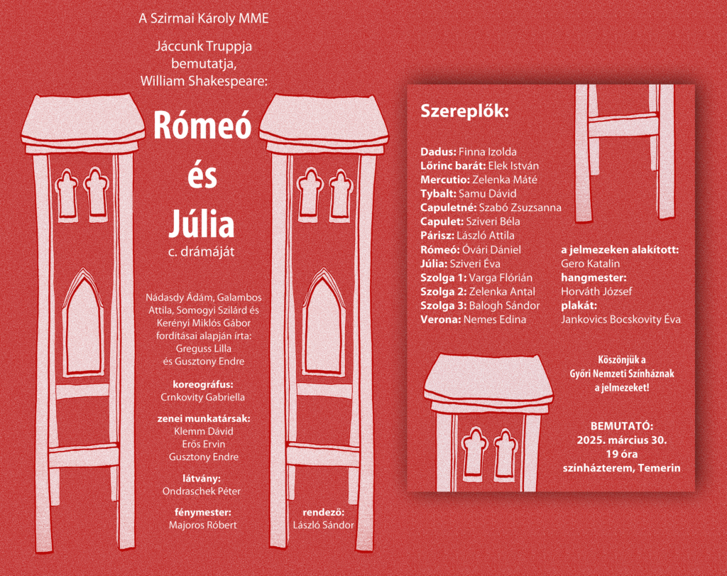 RÓMEÓ & JÚLIA – BEMUTATÓ Közzétéve 2025.03.25. Szerző: admin Facebook Messenger Twitter Viber Email Shakespeare halhatatlan szerelmi története megelevenedik Temerin színpadán!